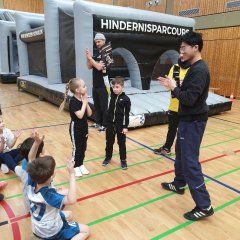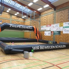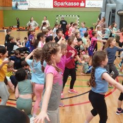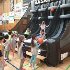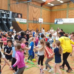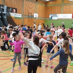 Das TRIXITT-Event bot allen Schülern eine völlig neue Form eines Sportfestes, bei dem sie sich unabhängig von Alter und Größe auf spannende und unterhaltsame Weise austoben konnten. Alle Kinder waren voller Begeisterung und Eifer dabei, als sie sich in die verschiedenen Aktivitäten stürzten, darunter Basketball, Hindernisparcour, Menschenkicker, Streetsoccer (Fußball), Zweifelderball und andere aufregende Herausforderungen. Doch das war noch nicht alles. Besonders beliebt war das Tanzen in der Turnhalle, das von Ihren Kindern - aber auch vom Kollegium - mit großer Begeisterung angenommen wurde. Die Musik dröhnte durch die Halle, während alle ihre" Moves" zum Besten gaben und ihre Tanzkünste unter Beweis stellten. Die energiegeladene Atmosphäre steckte alle Teilnehmer an und sorgte für jede Menge Begeisterung und Spaß.