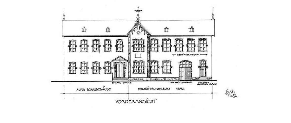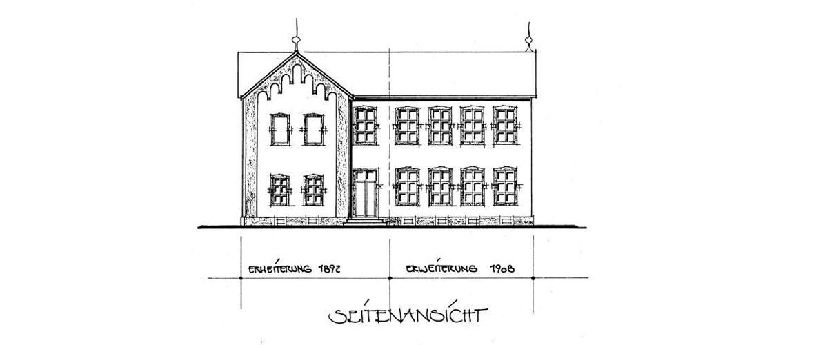 ... Da die Schülerzahl immer weiter anstieg, bestanden bereits zu dieser Zeit Pläne, den vorhandenen Schulsaal zu erweitern. ...